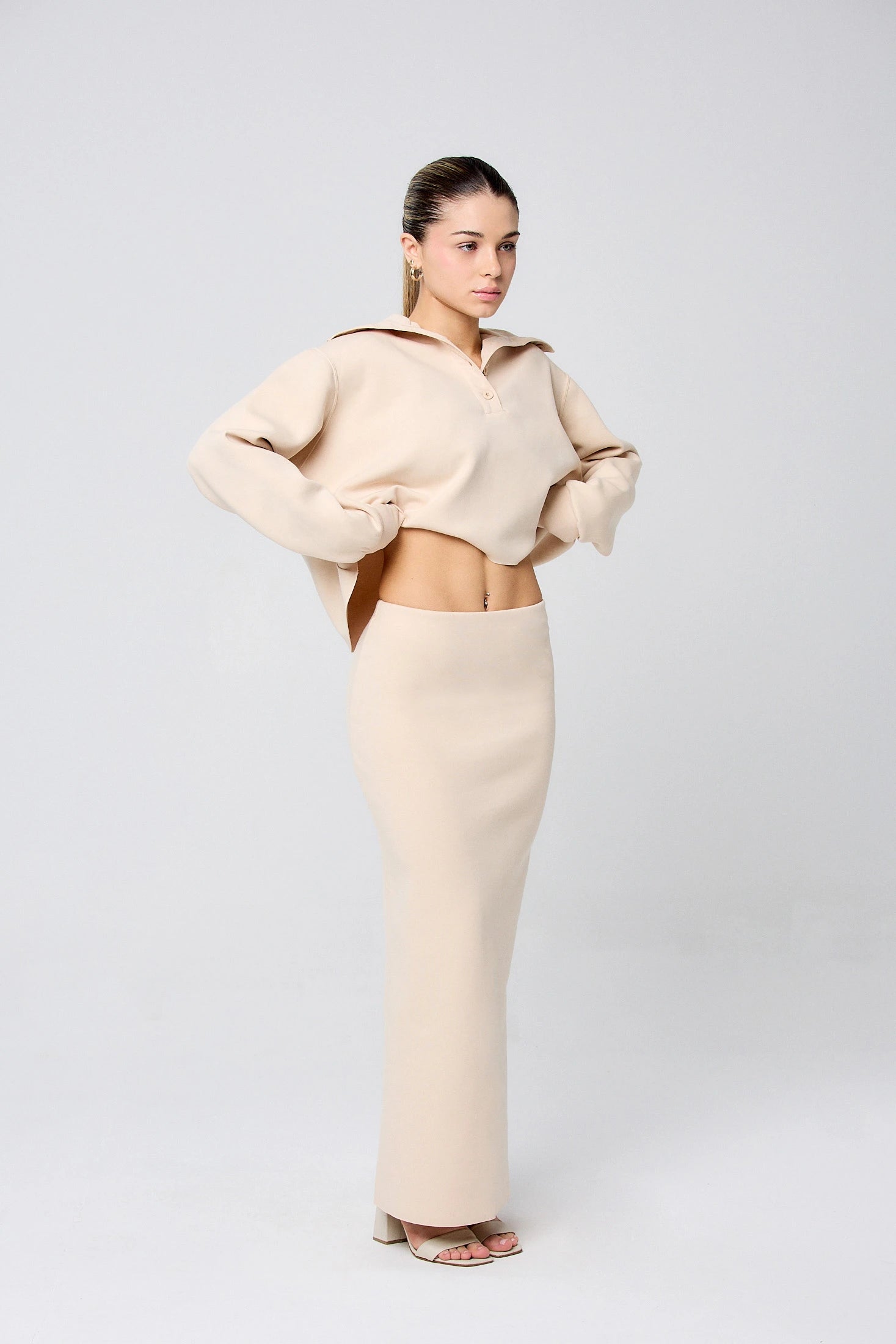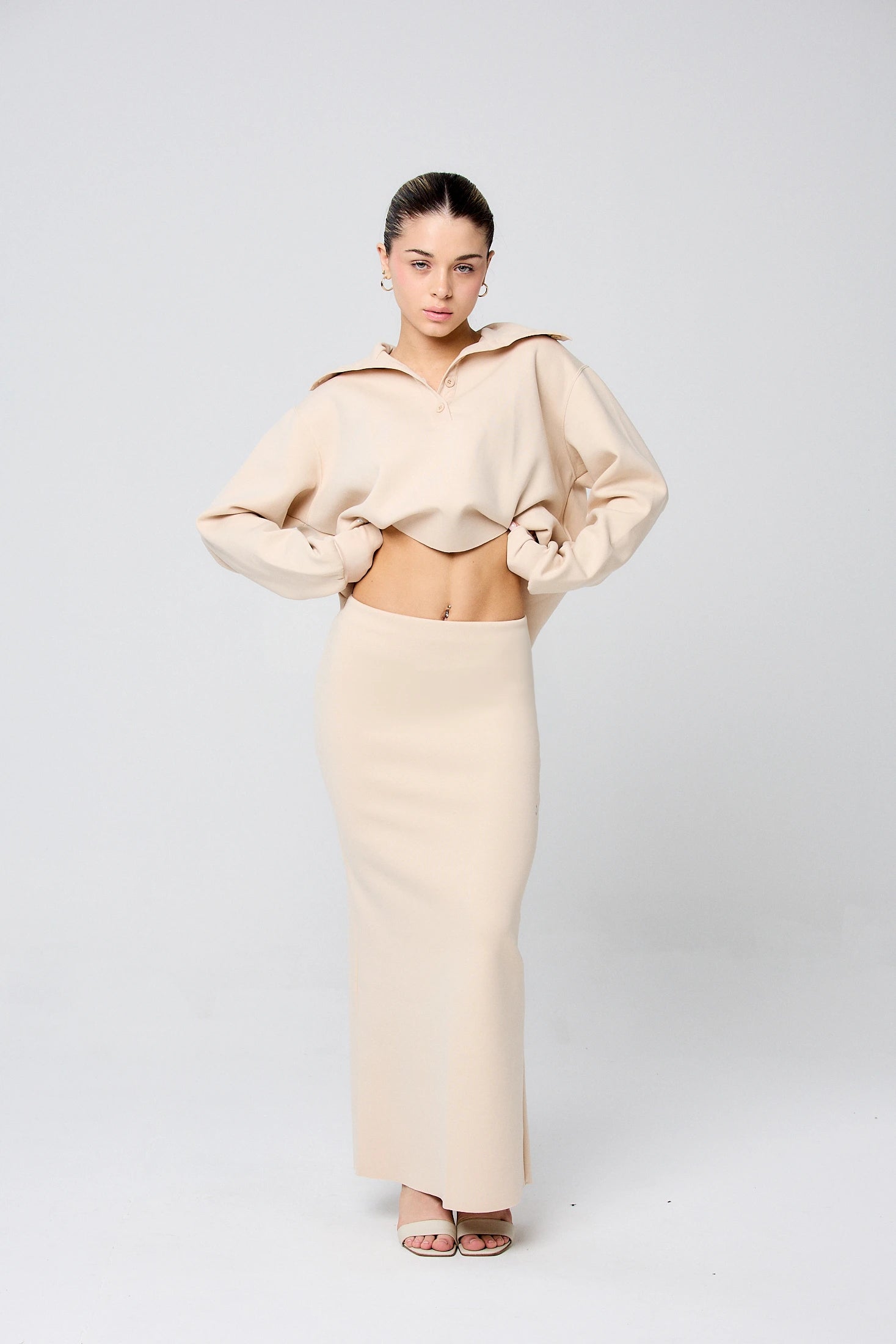 חצאית מקסי בגזרה ישרה ונשית עם שסע אחורי, נוחה ואלגנטית מבד רך ונעים. מתאימה ליום ולערב ותשתלב מושלם בכל לוק.