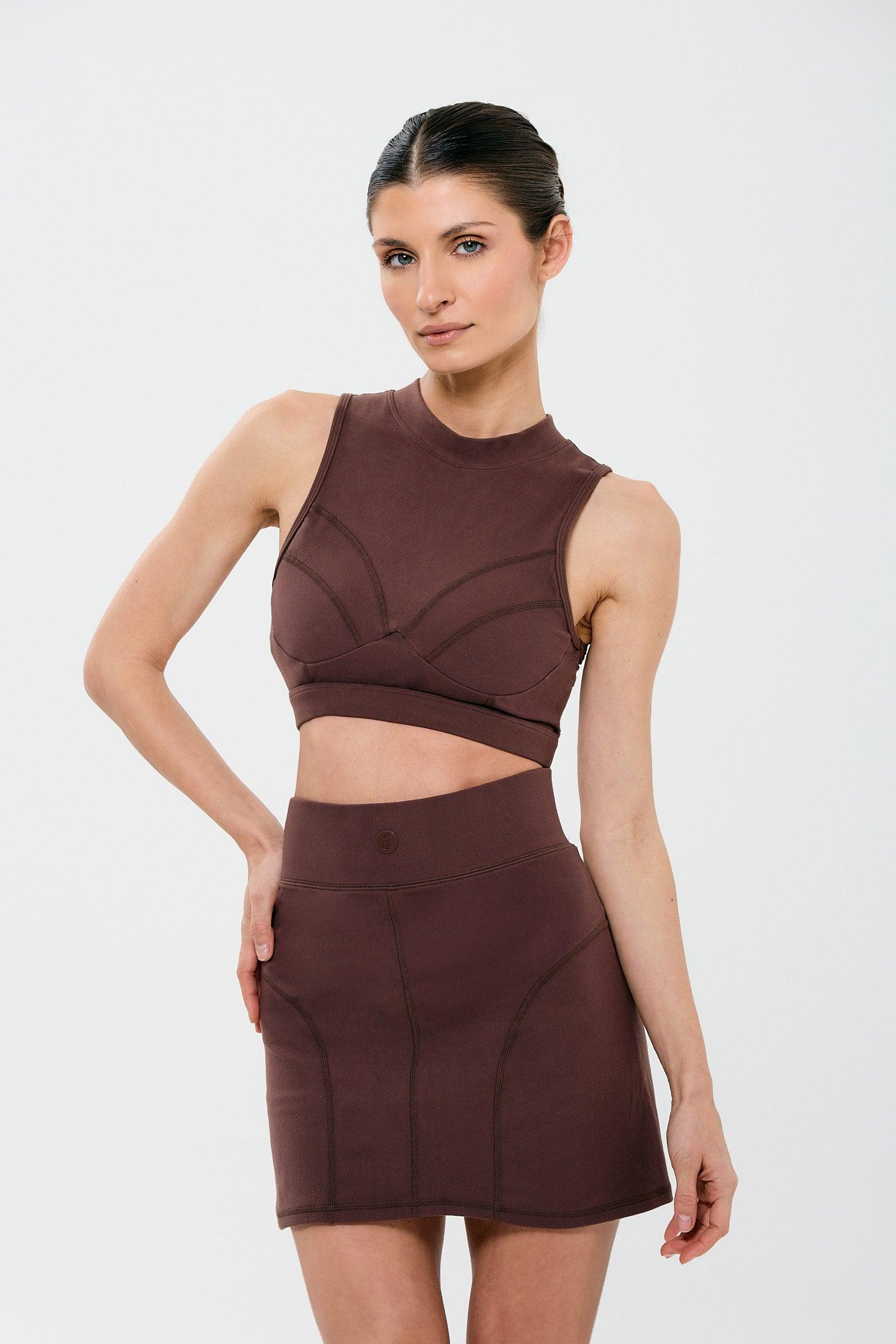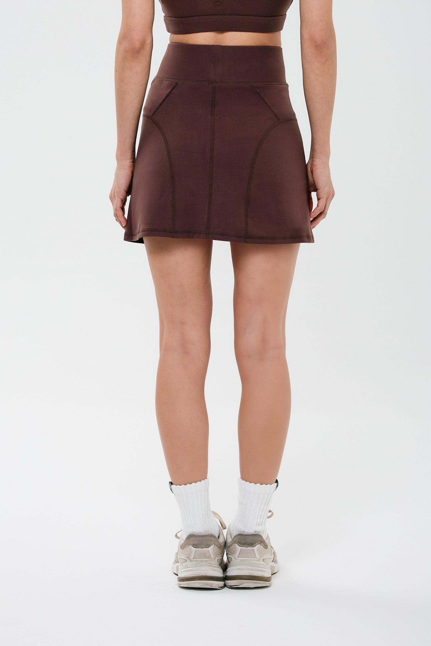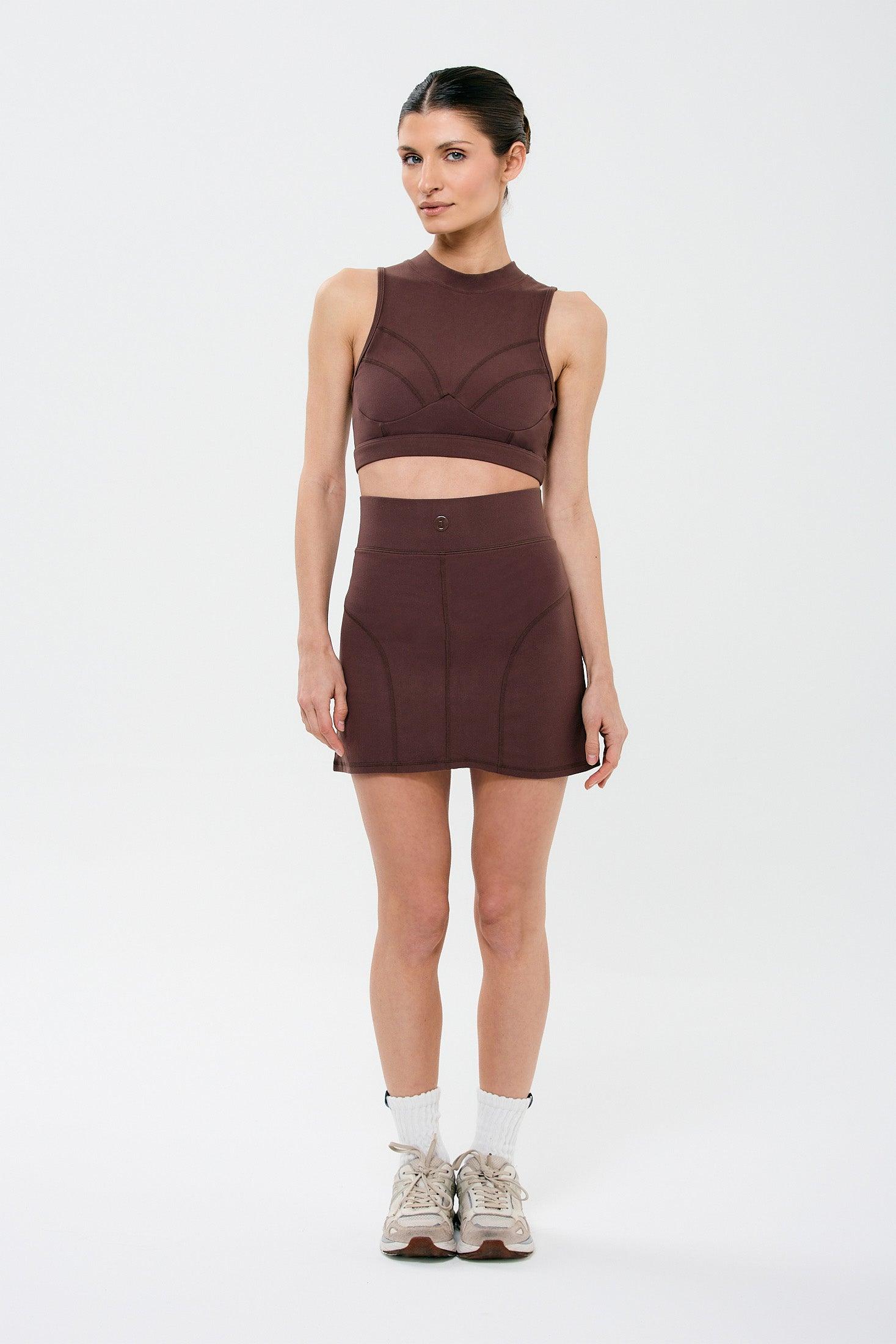 חצאית מכנסון מיני בגזרה גבוהה אוספת עם תיפורים עדינים.